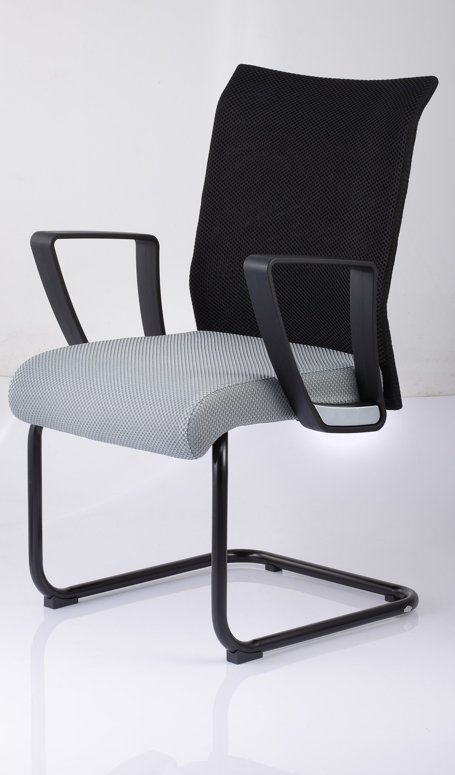 - 2.1mm thick, fixed round tube Powder coated/electro plated chrome mild steel cantilever base.